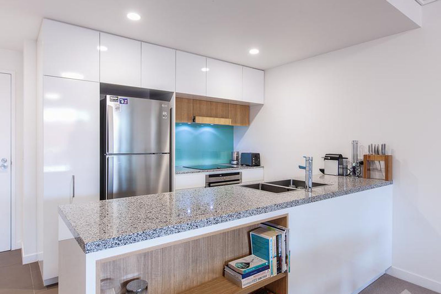 Boasting an open plan layout including Caesar stone kitchen with breakfast bar flowing easily thought the dining and living, and out onto a large entertaining balcony overlooking the Nova building.