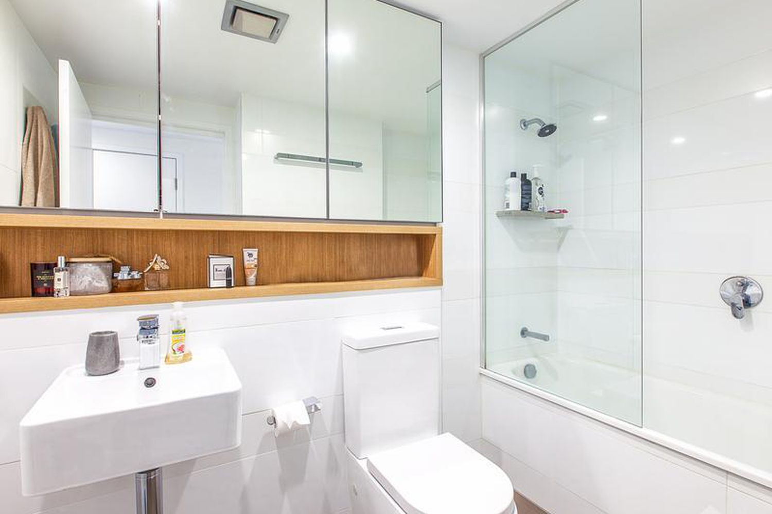 Adding to the privacy on offer, the large bedrooms, bathrooms and laundry are separated from the main living via a hallway. Both bathrooms offer premium finishes with a shower over bath in the main bathroom, and double vanity ensuite off the master bedroom. Enjoy your downtime and relaxing on the top level entertaining balcony, with BBQ area, relaxing day beds, capturing stunning city views and views of Brisbane river.