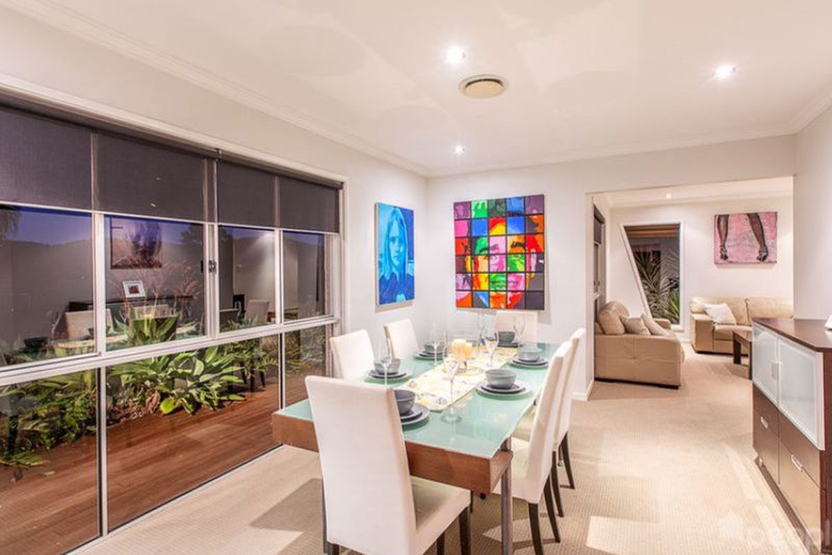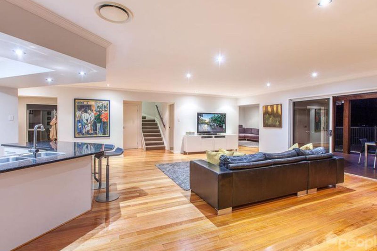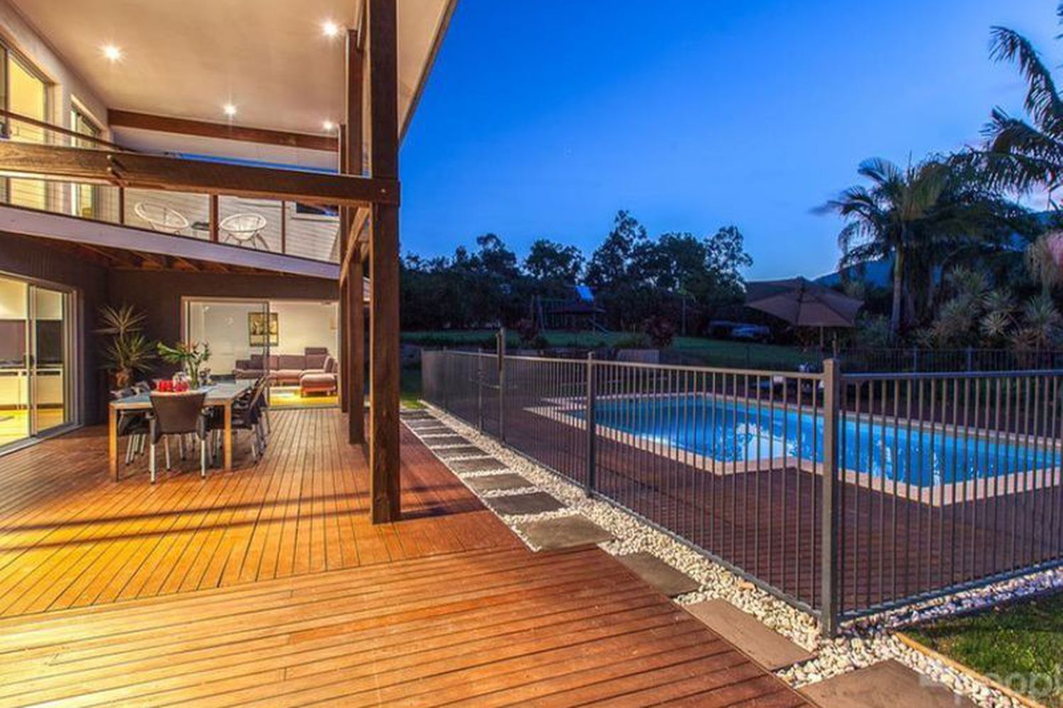 You are welcomed into the property through electric gates and a double door inviting entry. The lower level open plan design offers multiple living and dining spaces including a separate formal lounge and dining, flowing into the open plan kitchen and family and cinema. Sliding doors flow seamlessly out into a resort style entertaining paradise with approximately 200sqm of decking, sparkling in-ground pool and fully fenced backyard. Enjoy watching the sunset go down through the palm trees and over the mountains all year round, entertaining with friends, and watching the kids play.