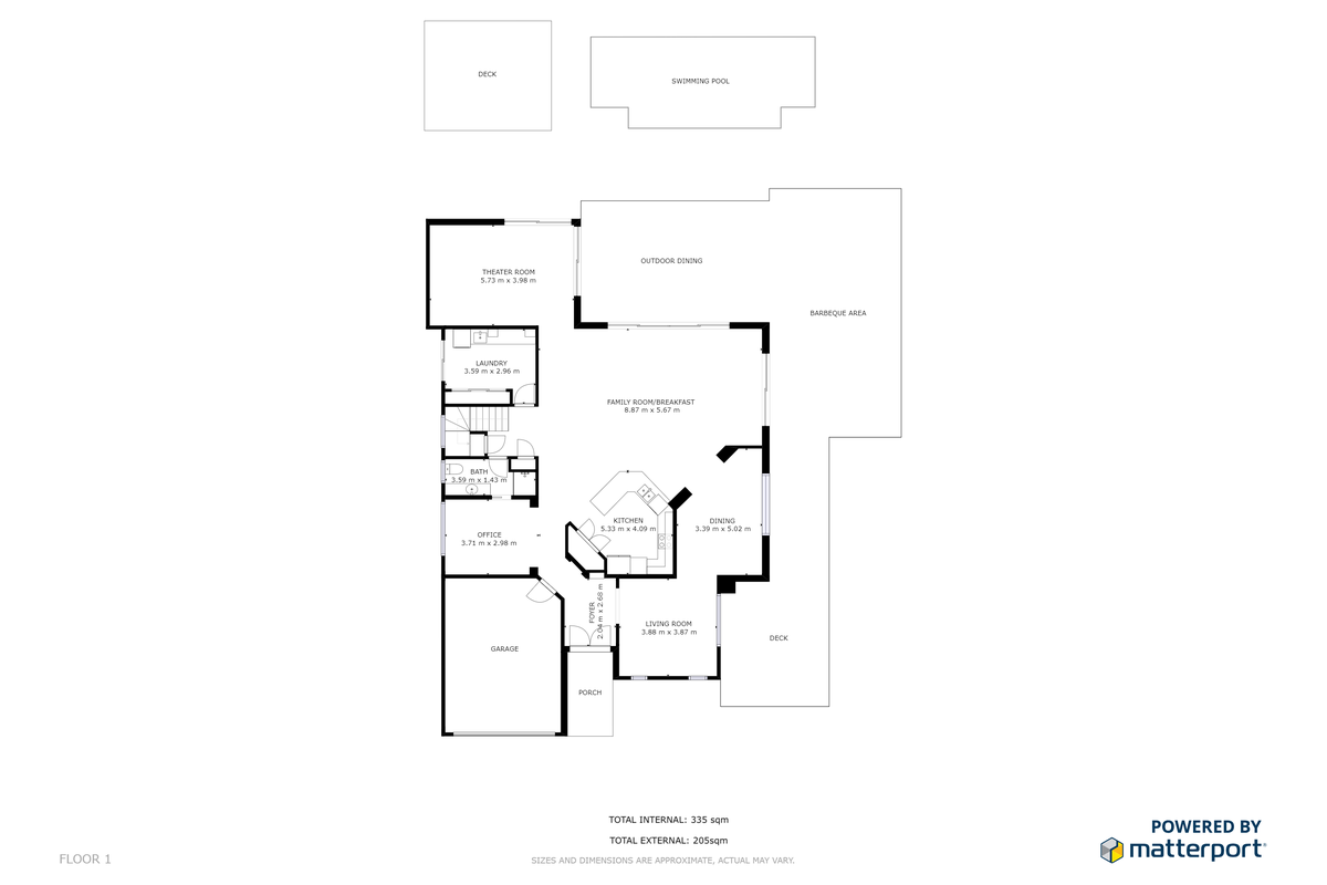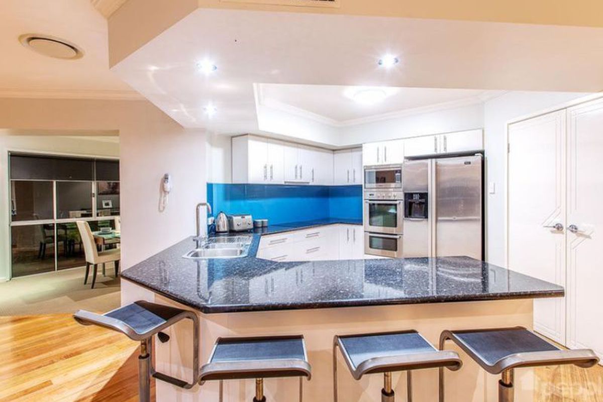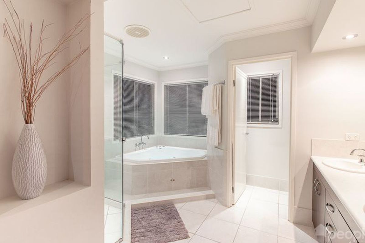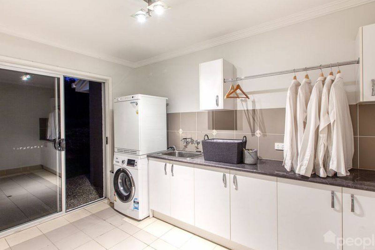 You are welcomed into the property through electric gates and a double door inviting entry. The lower level open plan design offers multiple living and dining spaces including a separate formal lounge and dining, flowing into the open plan kitchen and family and cinema. Sliding doors flow seamlessly out into a resort style entertaining paradise with approximately 200sqm of decking, sparkling in-ground pool and fully fenced backyard. Enjoy watching the sunset go down through the palm trees and over the mountains all year round, entertaining with friends, and watching the kids play.