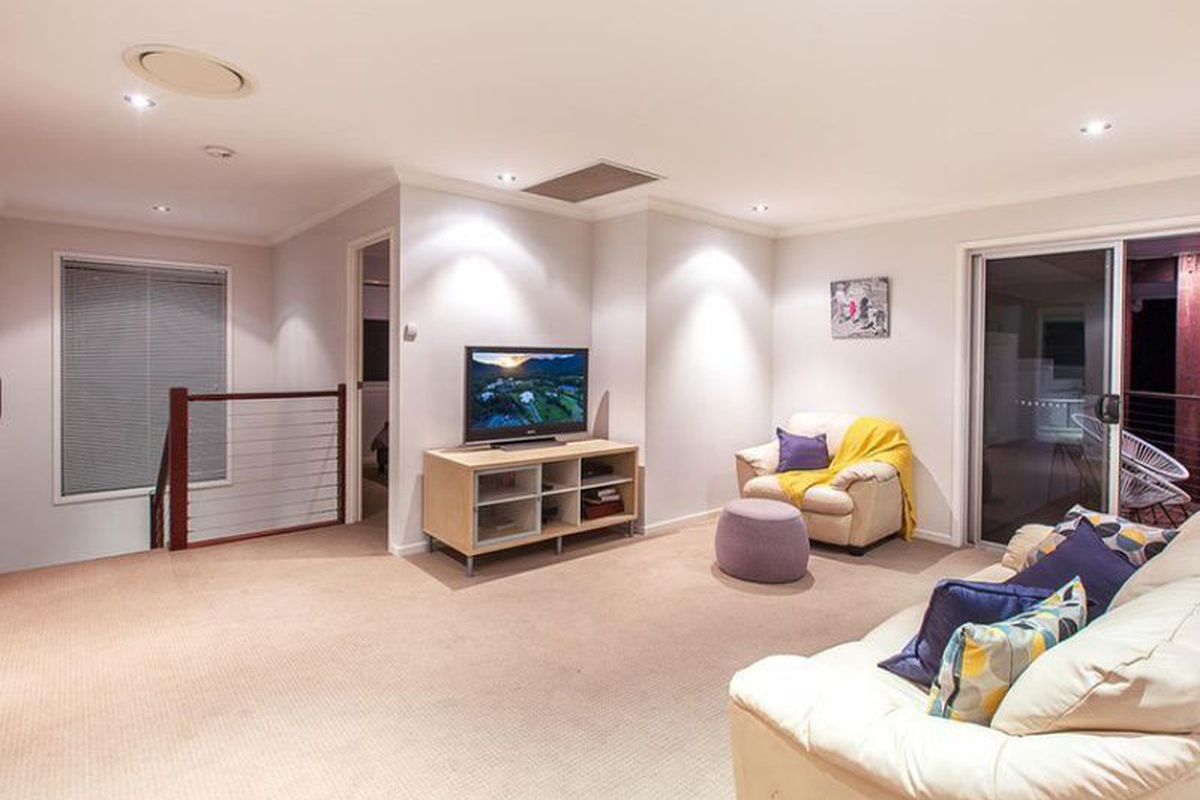 Internal stairs lead to the upper level housing the third family room, full bathroom with four family sized built in bedrooms. The lavish master suite with wraparound walk in wardrobe and ensuite and private balcony, taking in the mountain views, and sunset in the afternoon.
