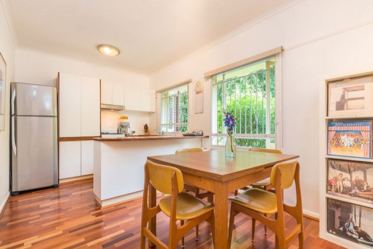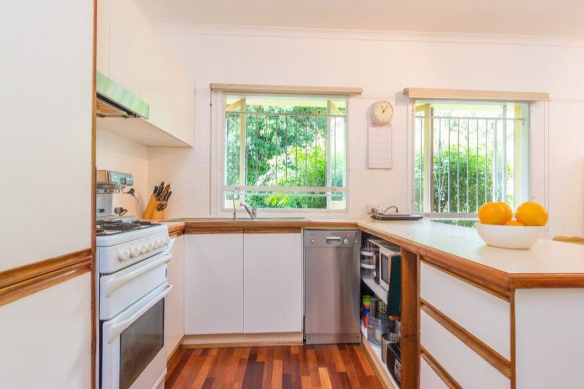 Styled with polished wooden floors, and fresh tones, the open concept design comprises a well-equipped kitchen providing wide bench and cupboard space, gas cooktop and convenient breakfast bar also. Adjoining this central hub of the home is a neat dining space and air-conditioned living area which flows out to a leafy courtyard and entertaining area.