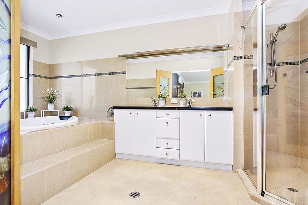The stunning gold and iron stair cases leads to the upper level, with a sitting area above the stairs, and separate hallway offering seclusion away from the bedroom wing. The lavish master bedroom is fit for a King and Queen, with double walk in wardrobe, double vanity and spa master, and dressing / sitting area. There are three additional king size bedrooms, plus a full main bathroom servicing the bedrooms.