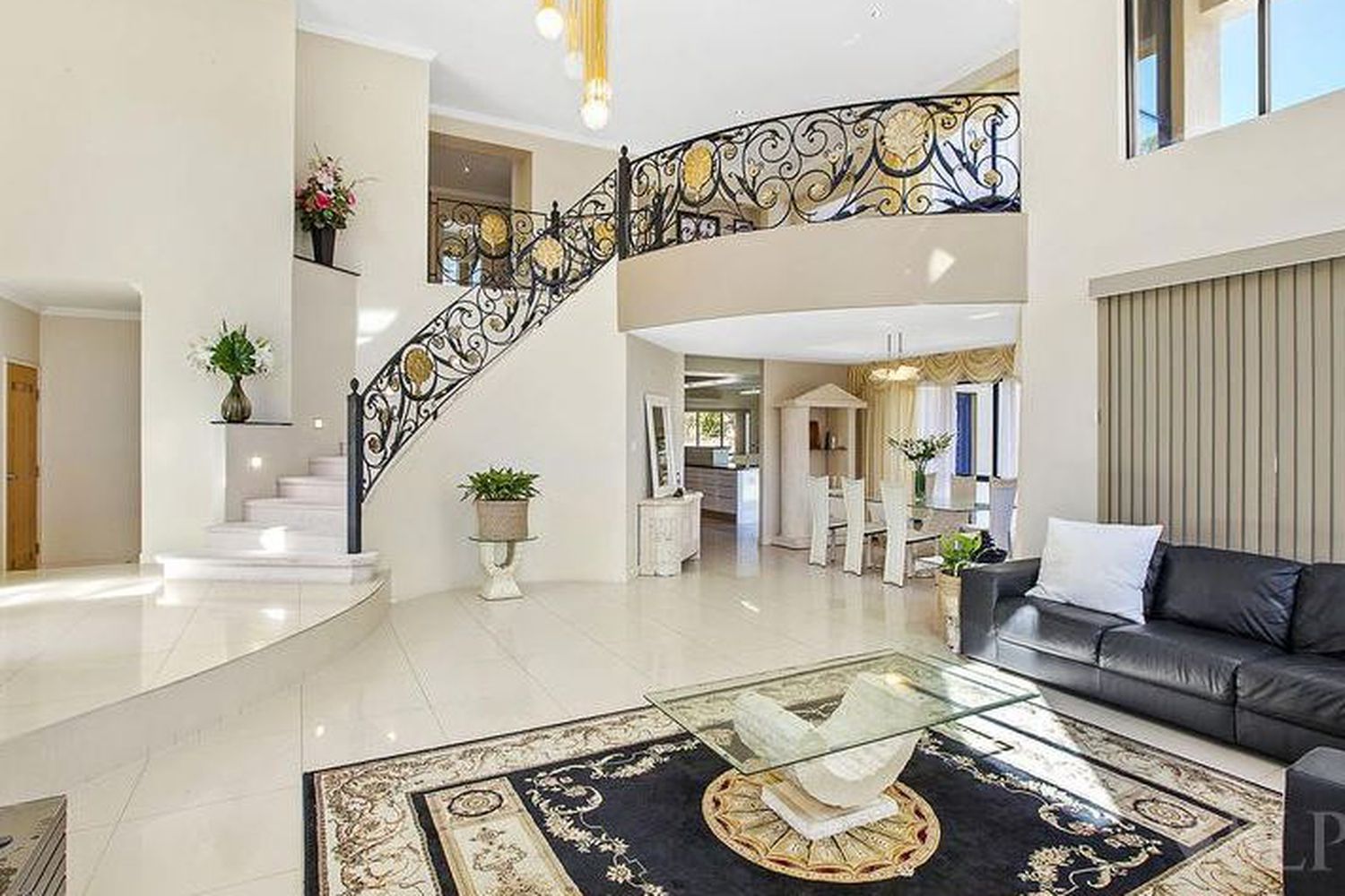 Amerce yourself in absolute luxury, with no expense spared in the creation of this stunning masterpiece. Boasting a clever contemporary architect design, showcasing Roman Palace elements and features including double story cathedral ceilings, sharp sleek cornices, marble electric fireplace, bright white premium tiles, and double story columns.