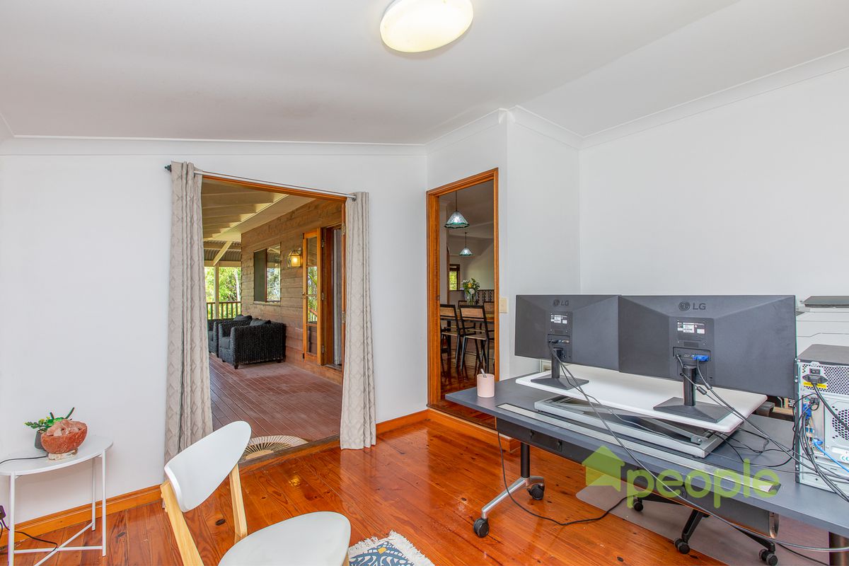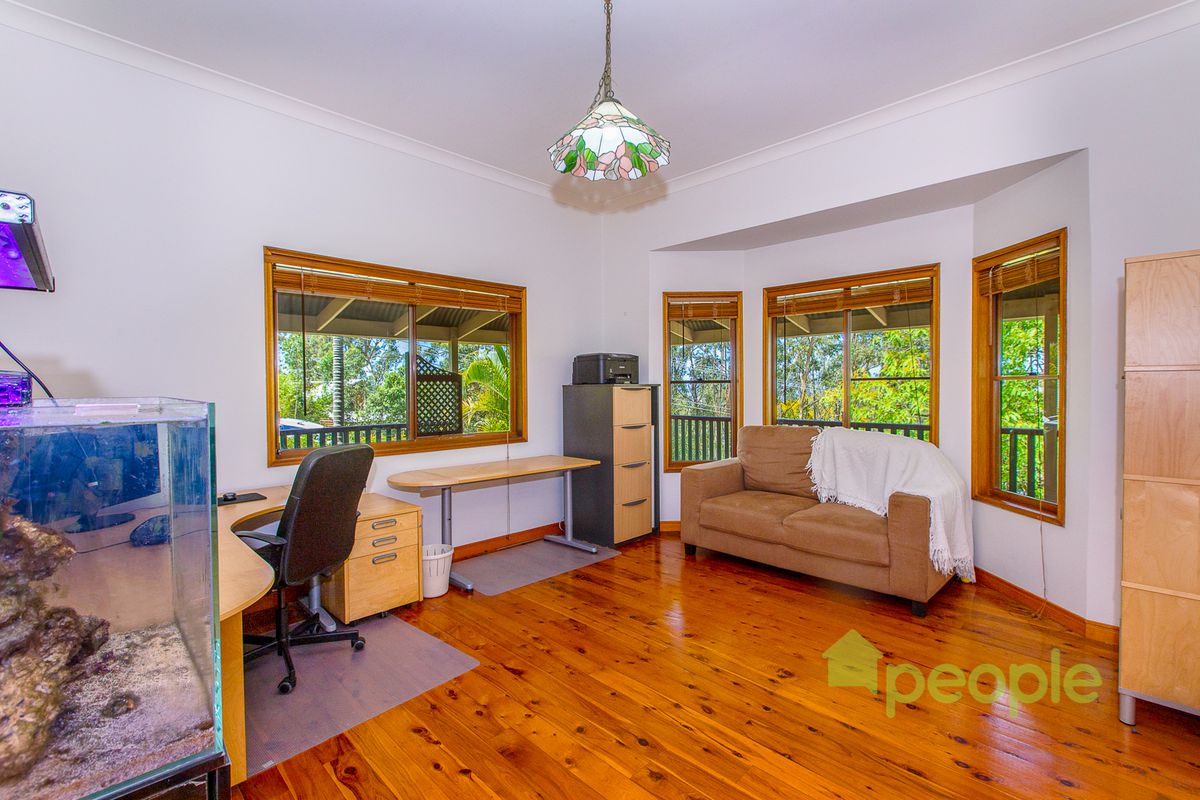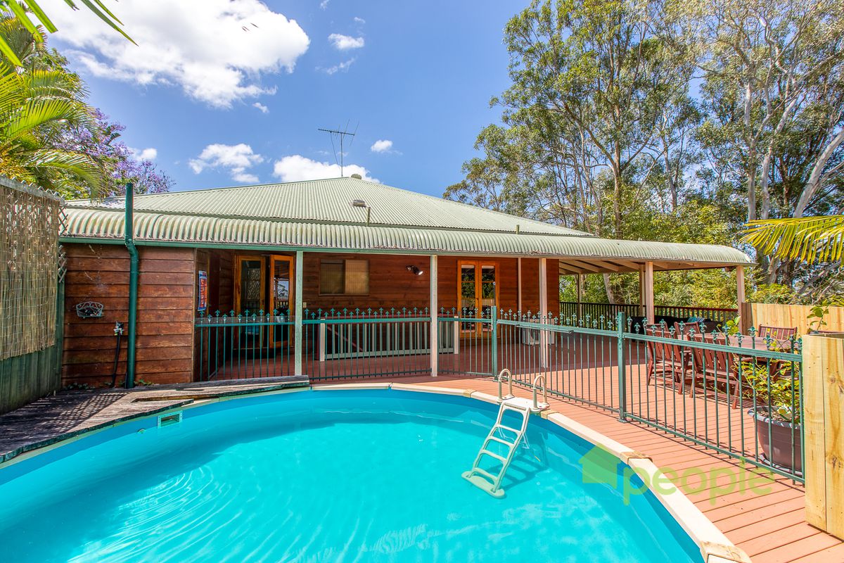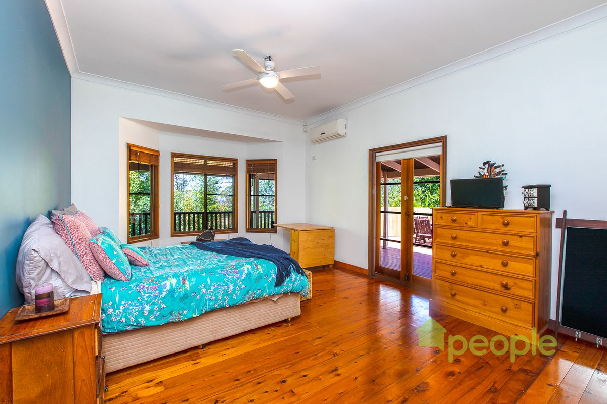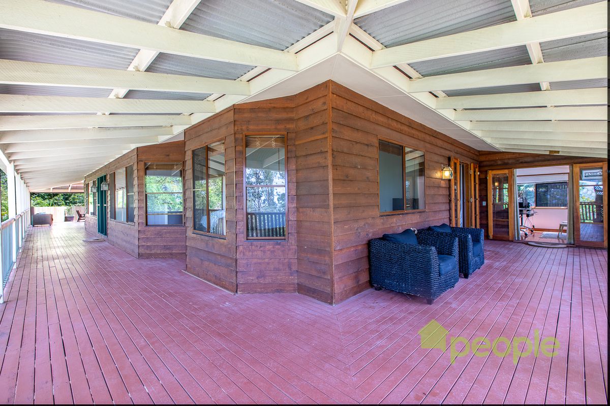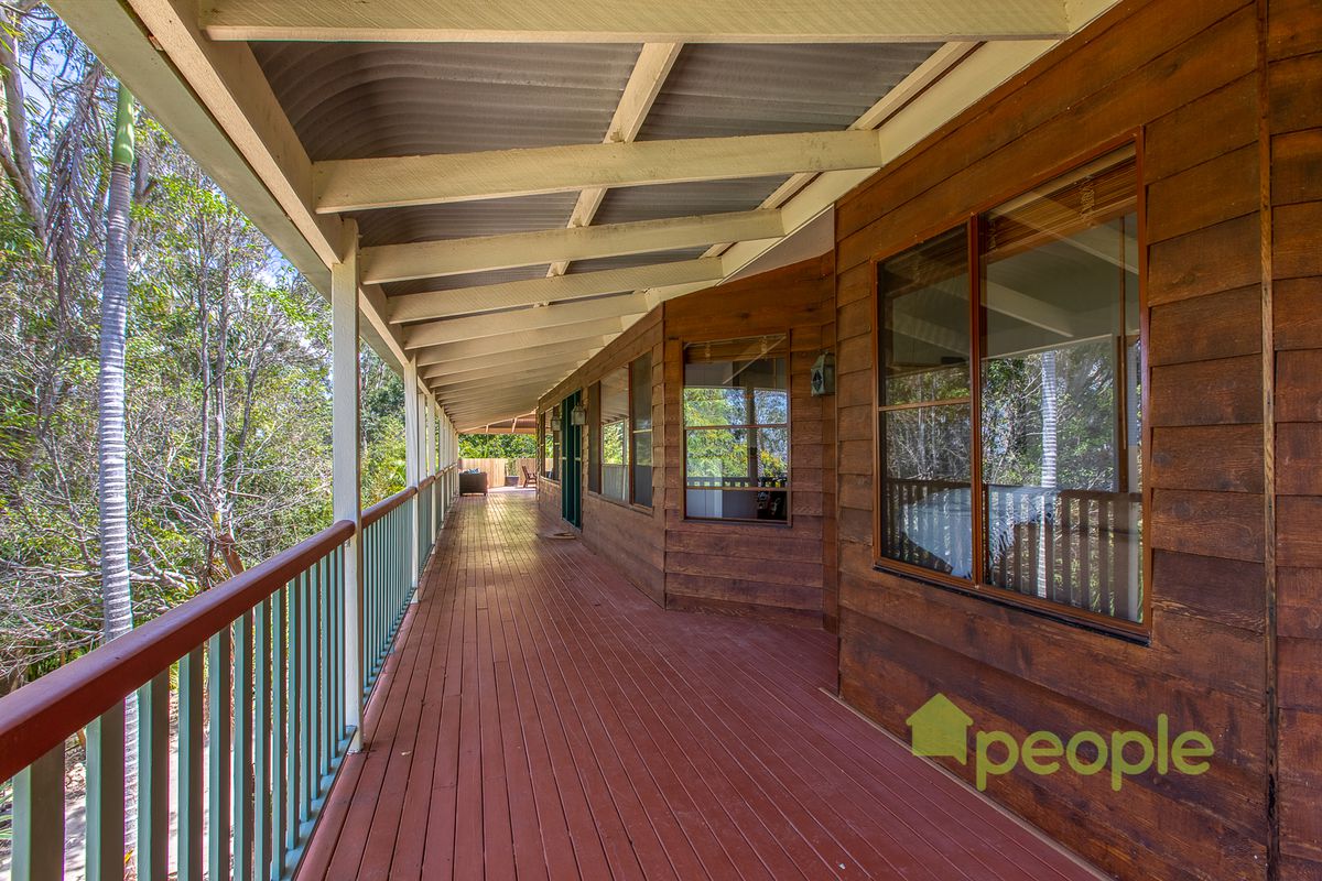 Escape the bustle of lower suburbia from the vantage point of the treetops, instead enjoying birdsongs and wildlife from any point on the wide wraparound bullnose veranda of your cedar style family home.