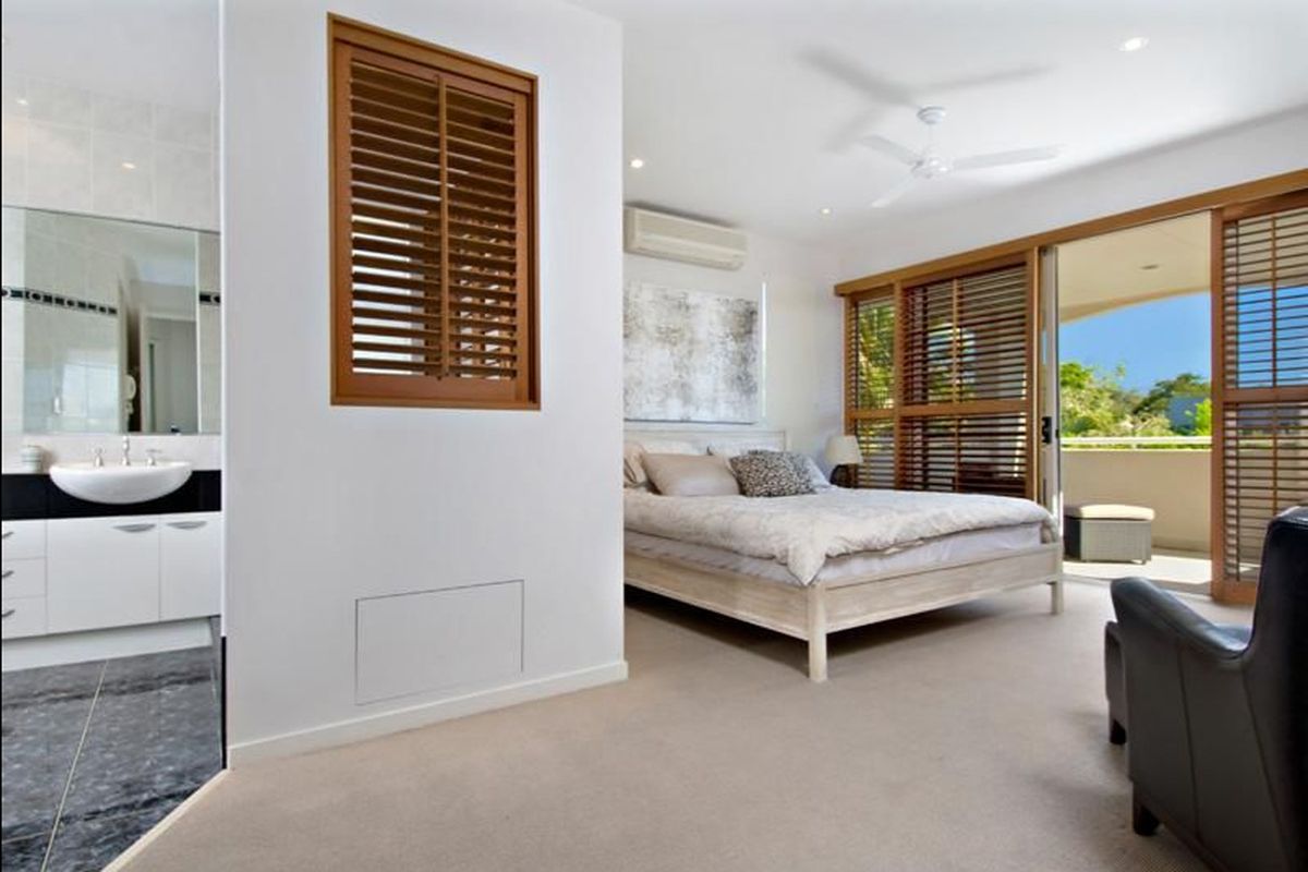 Upstairs, the enchanting master suite is a delightful space that cleverly allows for complete privacy within an open concept design. It features a huge ensuite, walk-in robe opening out onto its own private balcony, basking in picturesque panoramic views of Mount Coolum, the grounds and the naturally spring-fed lakes. In the warmer months, the Jacaranda trees are on show for your enjoyment. Another two bedrooms are found on the upper level with an interconnecting bathroom, spa bath and separate toilet also feature on this level.